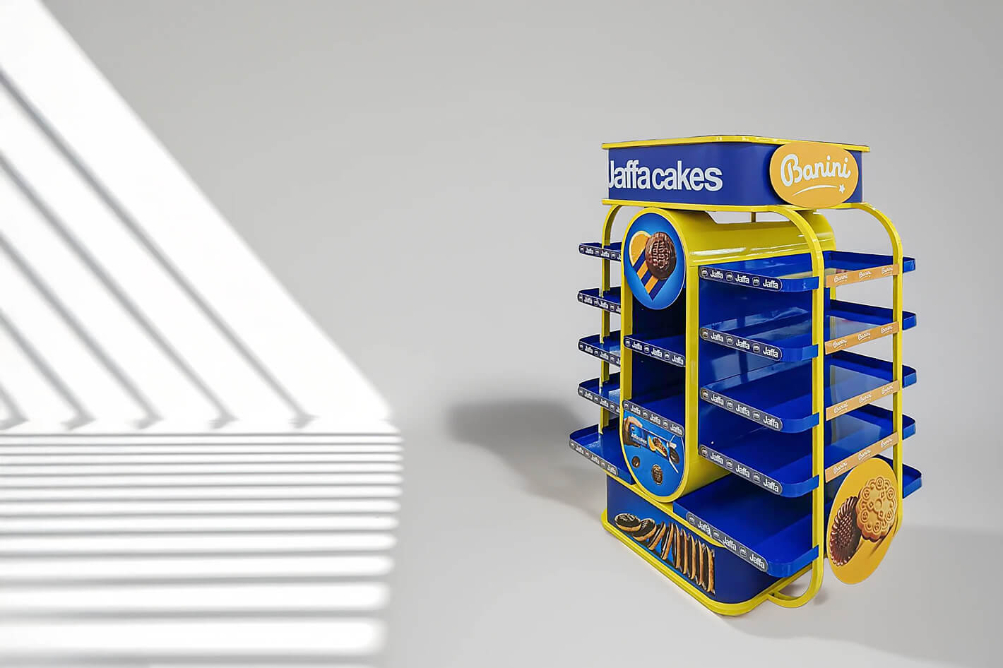 Stabil, leicht zu versetzen und visuell ansprechend – entwickelt, um Aufmerksamkeit zu erzeugen, Impulskäufe zu fördern und die Markenpräsenz im Verkaufsraum zu stärken.