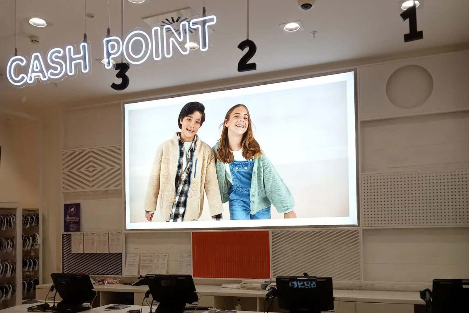 Ideal for storefronts, retail interiors, or trade fairs – offering quick graphic changes and strong visual presence.