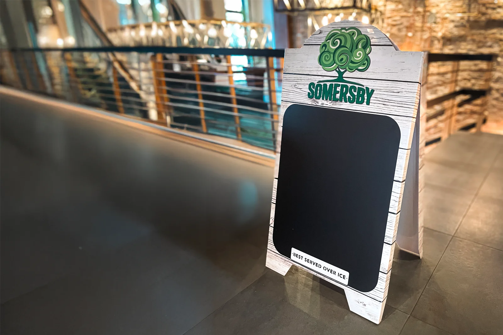 Branded A-boards offer a practical and flexible way to attract attention in front of cafés, restaurants, or bars.